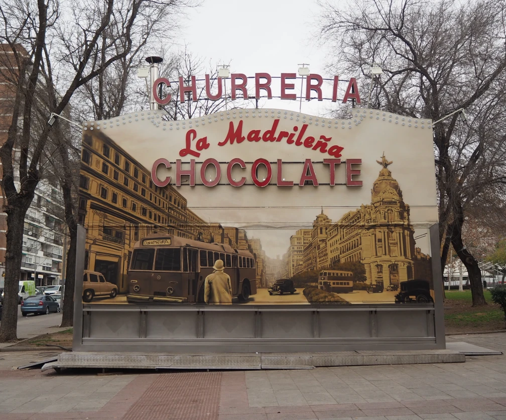 Malasaña es sinónimo de persianas ilustradas, tipografías juguetonas y guiños pop. Conde Duque, a pocos minutos, aporta un toque más ordenado y monumental.
