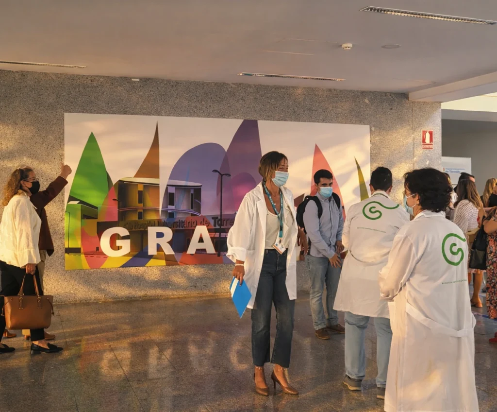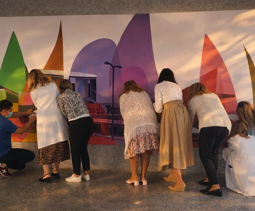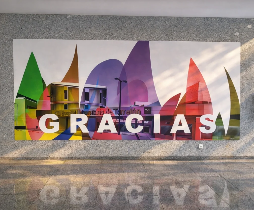 Desde el Hospital Universitario de Torrejón de Ardoz se pusieron en contacto con nosotros con una idea clara: querían un mural que sirviera como homenaje a médicos, enfermeros y a todo el personal del hospital, pero con una condición importante: